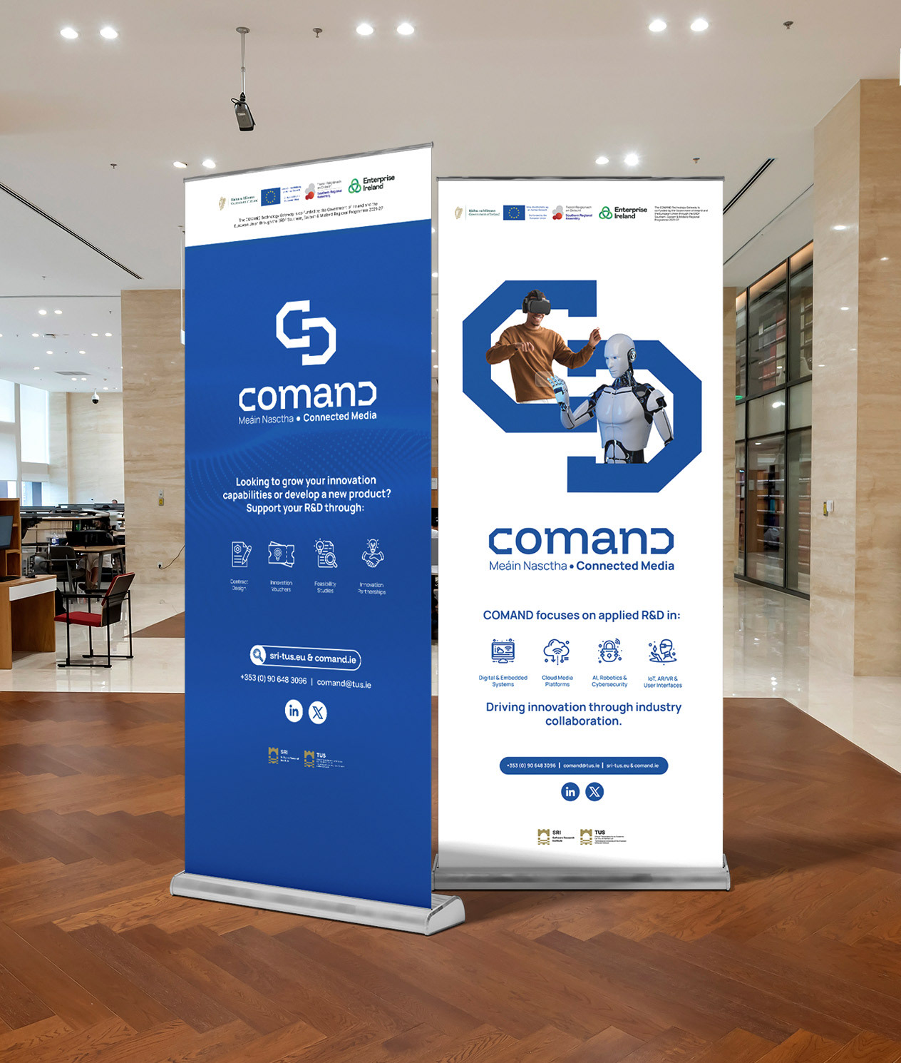 This project involved a complete brand refresh for Command, focused on modernising their visual identity while strengthening clarity, consistency, and trust. I redesigned the logo, refined the typography and colour system, and developed a comprehensive brand framework that could scale across print, environmental, and exhibition design. The refreshed identity was applied across brand guidelines, letterheads, brochures, tote bags, pull-up banners, flags, wall graphics, exhibition stand design, PowerPoint templates, and social media assets, ensuring consistency across all touchpoints. The result is a flexible, future-ready brand system that supports clear communication, professional presentation, and long-term growth.