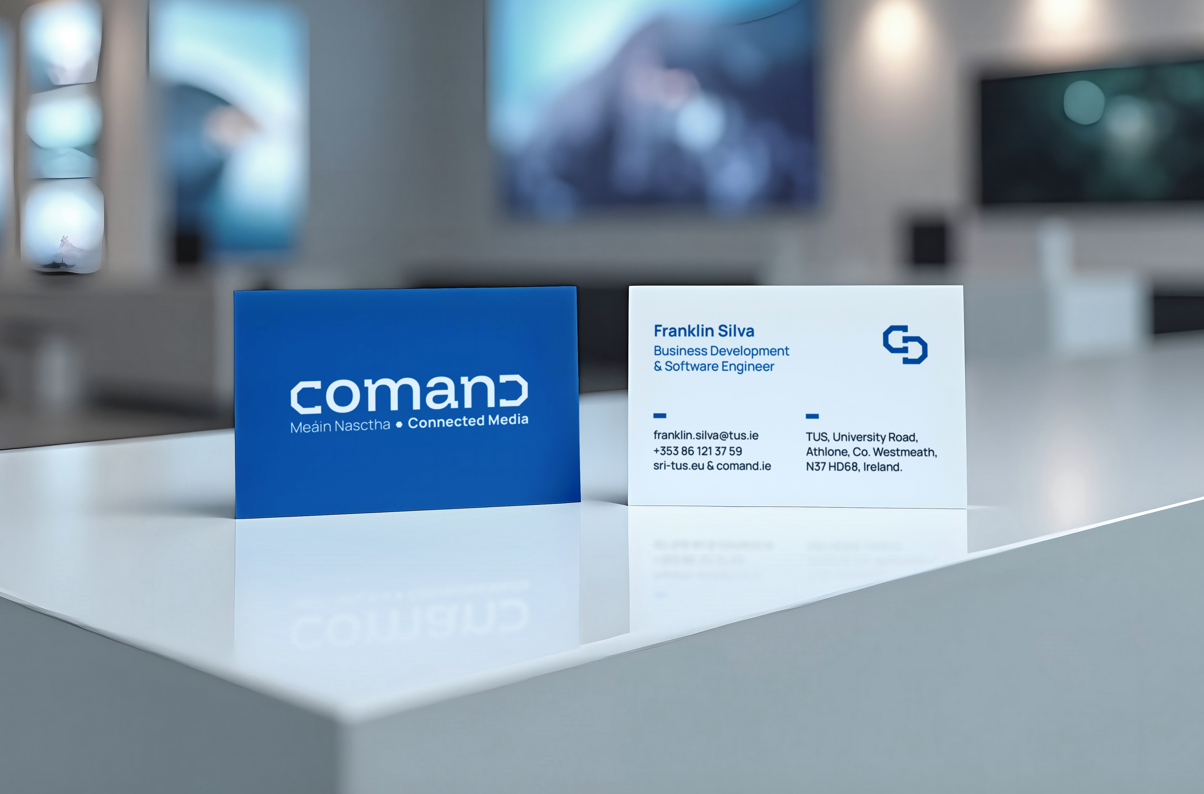 The new Comand logo brings together the “C” and “D” from ‘Comand’. Shaped into bracket-style forms, inspired by tech and coding visuals, they give the brand a clean, modern look while still staying practical and easy to use. They also work as simple graphic elements used across the wider identity, helping keep all print and digital designs consistent and recognisable.